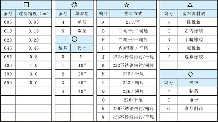 ◇ 密封圈:见滤芯选型表
